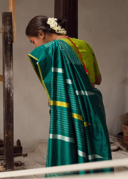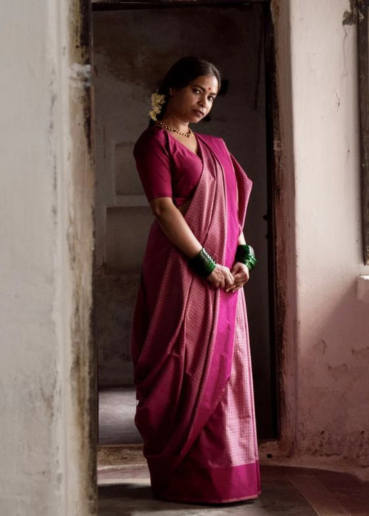 Discover the timeless elegance of Kubsa Sarees. Featuring Ilkal weaves handwoven in North Karnataka and Kanha sarees from Maharashtra.