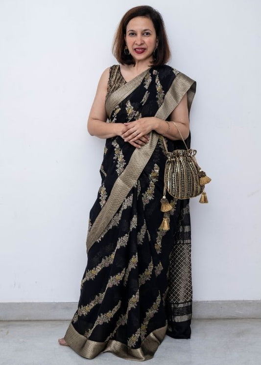Antique Black Embroidered Potli - AM-PT-0225-0003