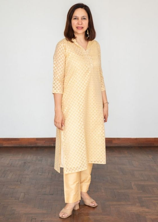 Beige Black Malai Cotton Short Kurta - MMSK044