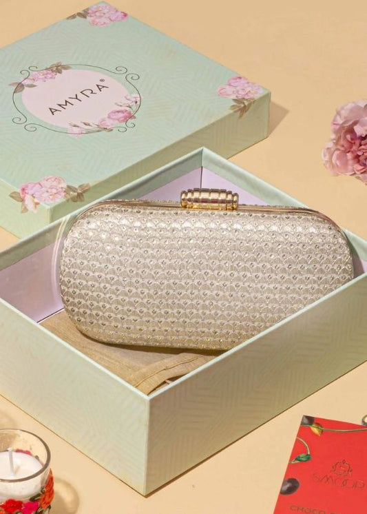 Anya Box Clutch Cream and Light Gold - AM BC 0619 0003