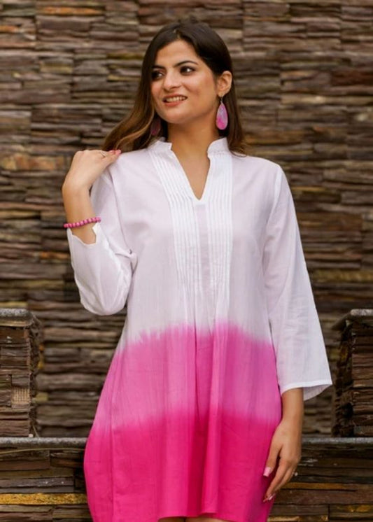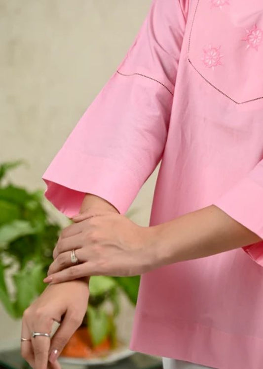 Pink Ginko Leaf Embroidered Tussar Cotton Tunic