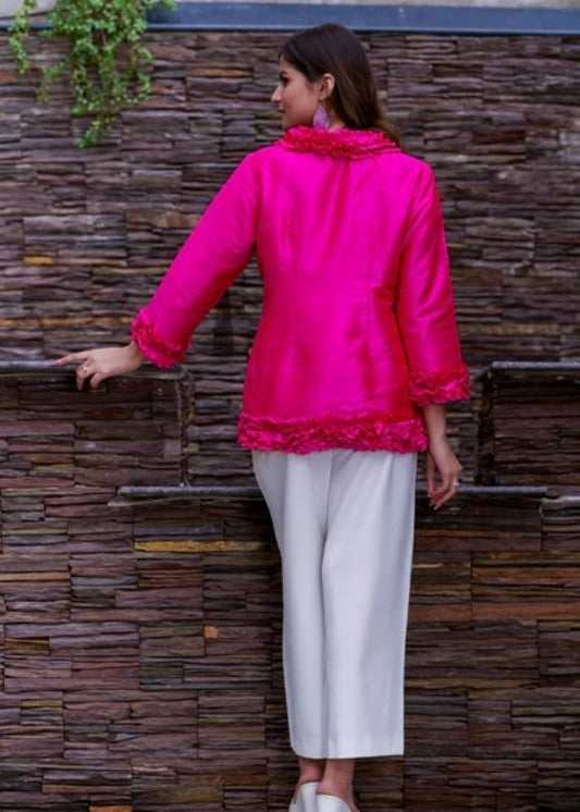 Pure silk Dupion Ruffle Jacket- Pink