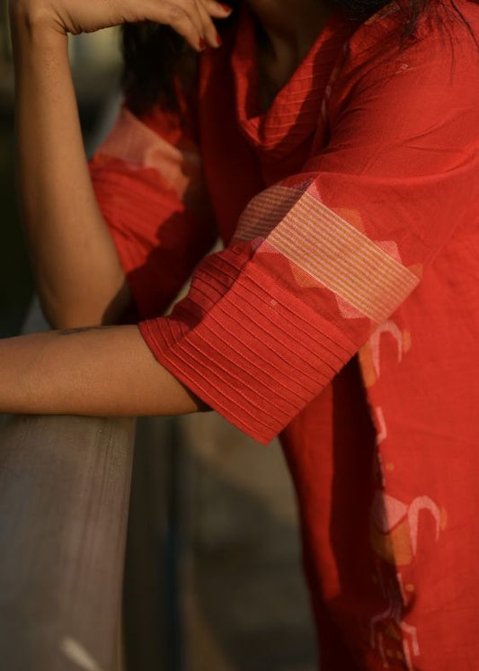 Red Flower Spring Tussar Cotton Tunic