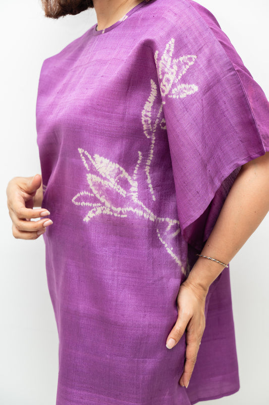 Purple Tussar Silk Shibori Kaftan