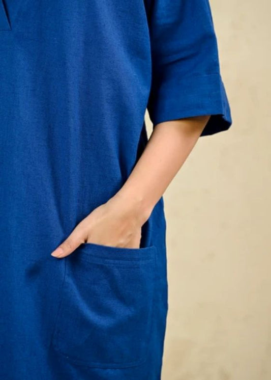 Royal Blue Cotton flax Short Dress