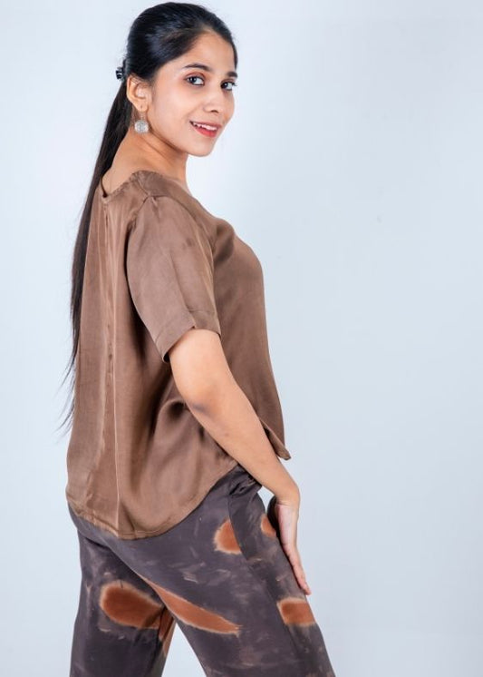 Round neck dark beige blouse