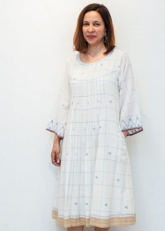 White , Green & Blue Panelled Cotton Shirt - MM0890