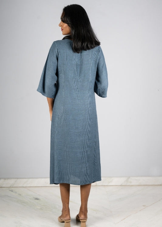 vy Blue Shirt with Magenta Chanderi Digital Print