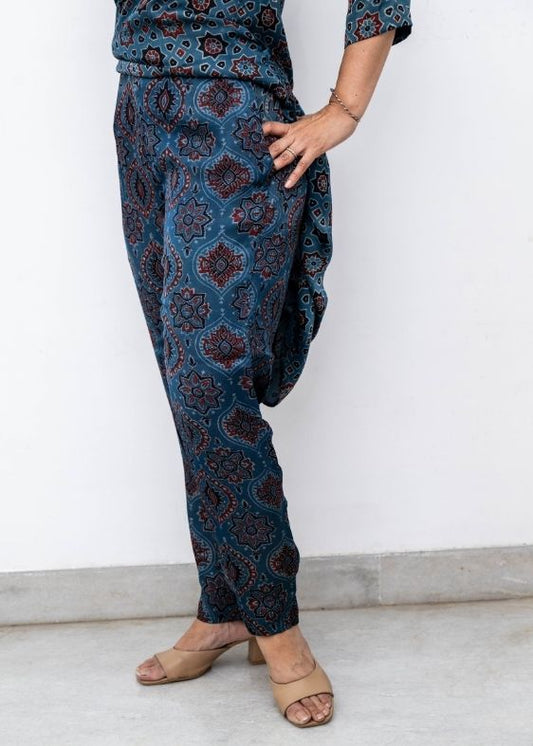 Blue Modal Silk Ajrakh Print Pant
