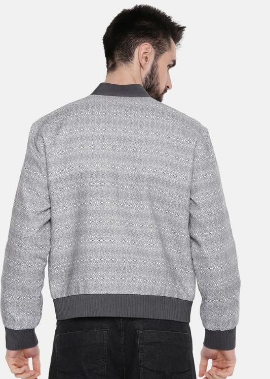 Grey Linen printed bomber jacket
