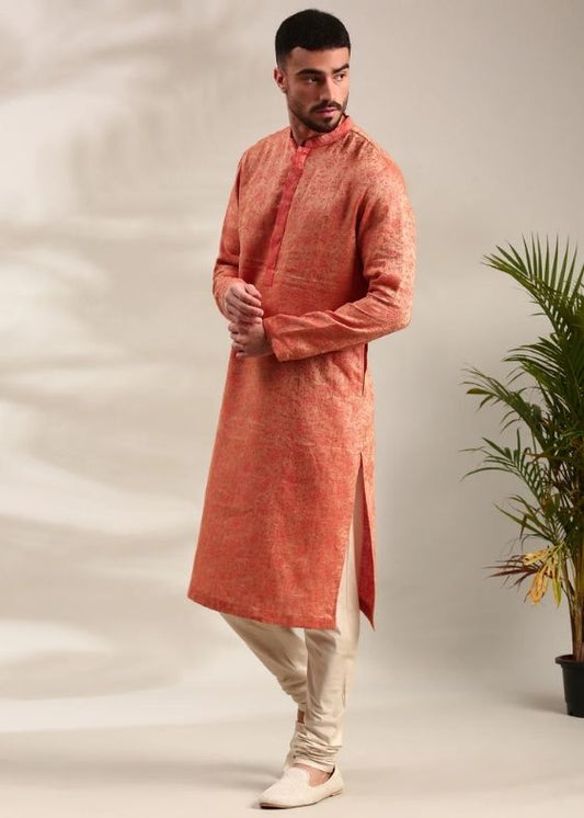 Orange Silk Jaquard Kurta Set - MMK0596