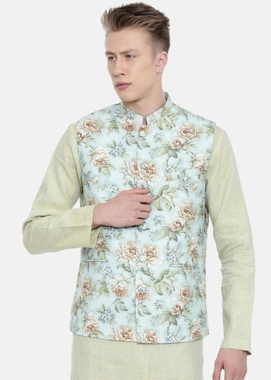 Linen Green Printed Jacke - MMWC0155