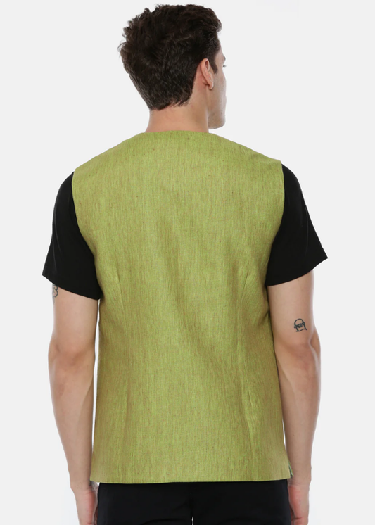 Mustard Green Linen Open Jacket