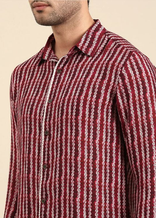 Maroon Muslin Printed Shirt - MM0879