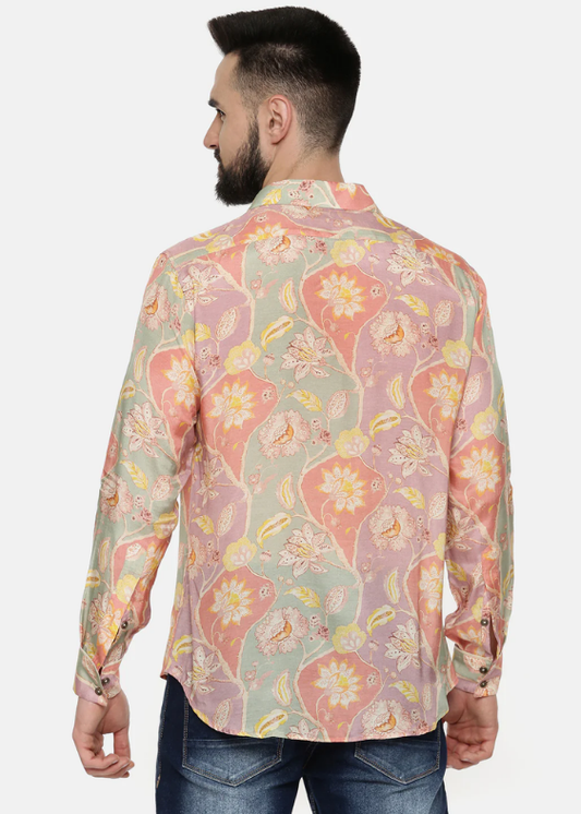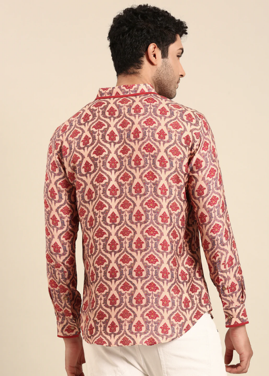 Peach Printed Muslin Shirt