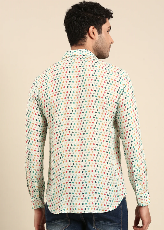 Light Blue Base Muslin Printed Shirt