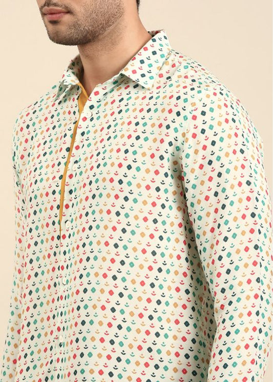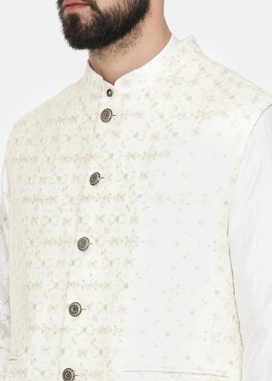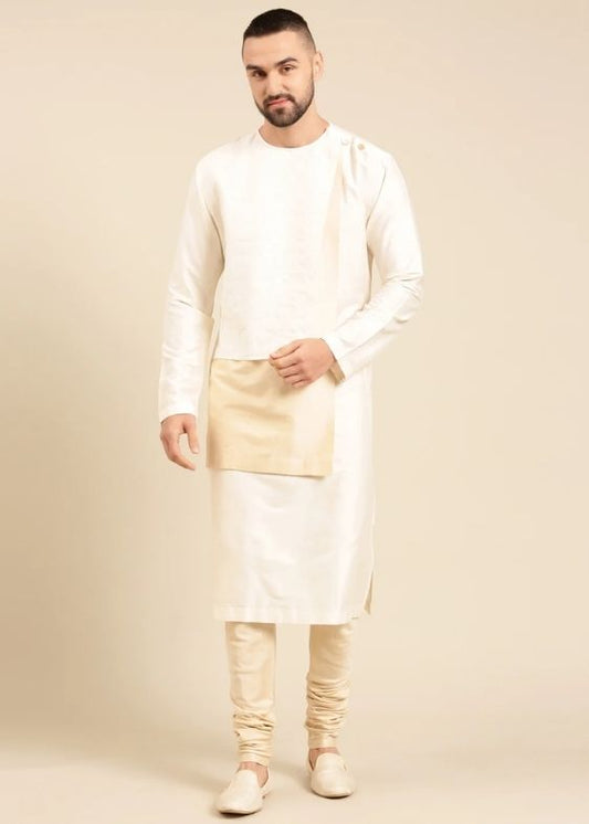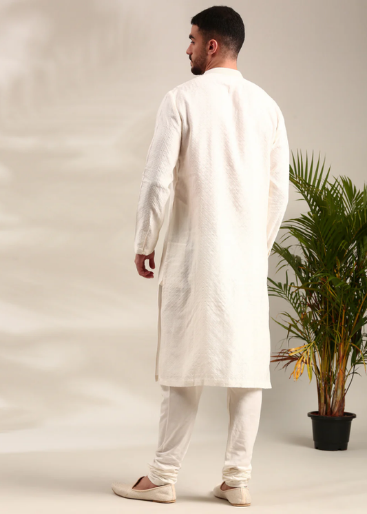 Ivory Silk Cotton Jaquard Kurta Set
