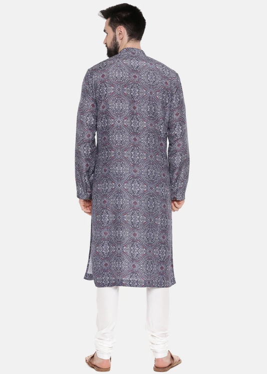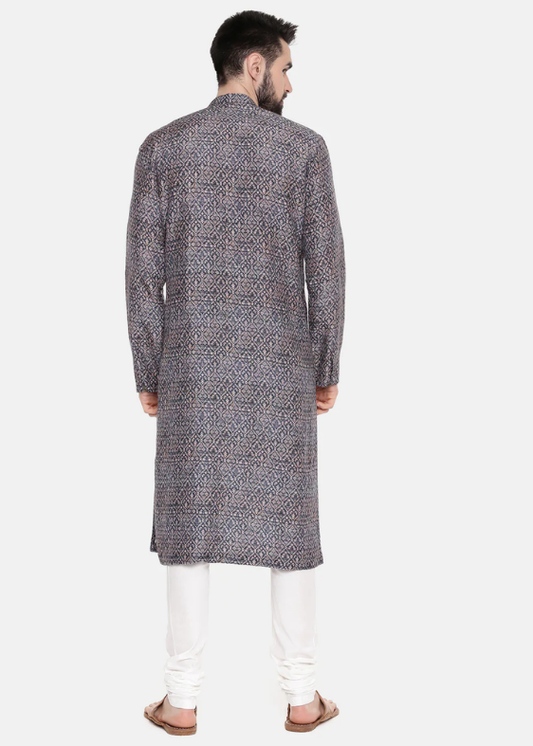 Linen Bemberg Blue Print Kurta Set