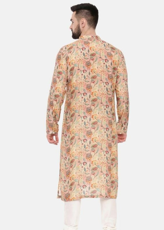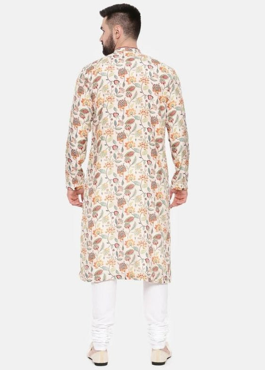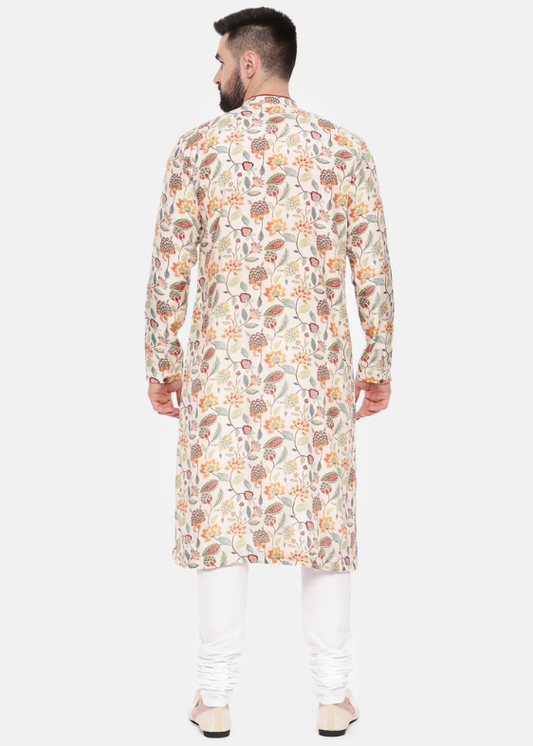 Ivory Pink Printed Muslin Kurta