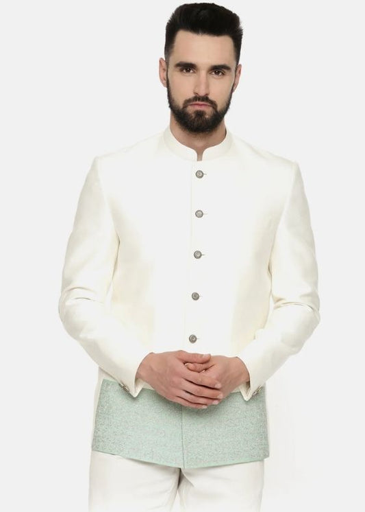 Ivory Green Embroidered Jodhpuri Suit - MMJ0148