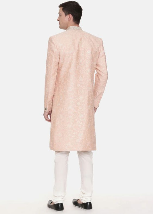Pink Chanderi Embroidered Sherwani -MMSHR035