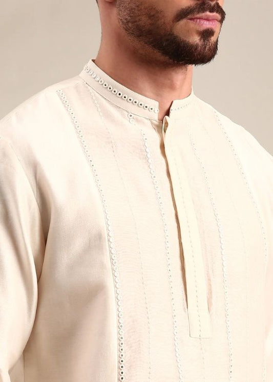 Ivory Hand Embroidered Kurta - MMK0541