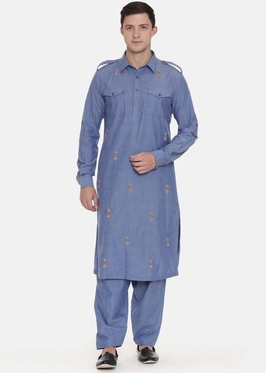 Pathani Blue Kurta Set - MMKK0495