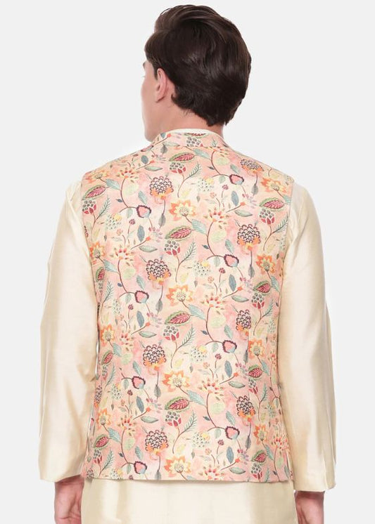 Peach Printed Muslin Nehru Jacket