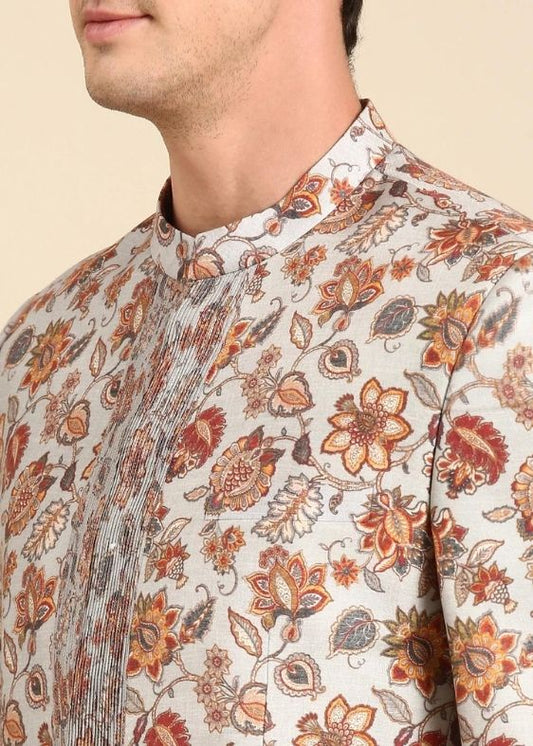 Grey Floral Printed Designer Bandhgala