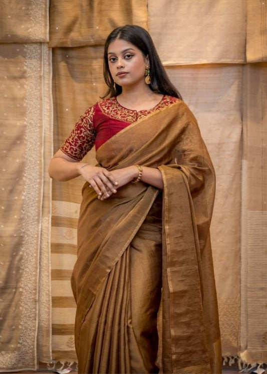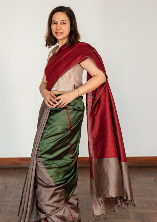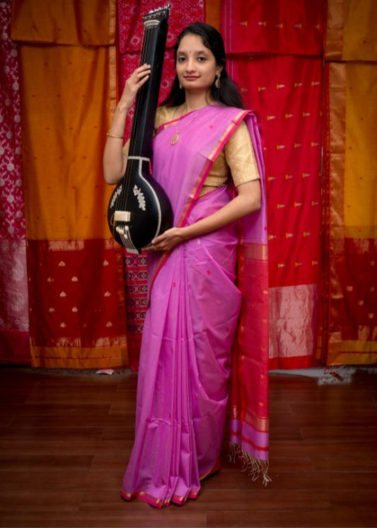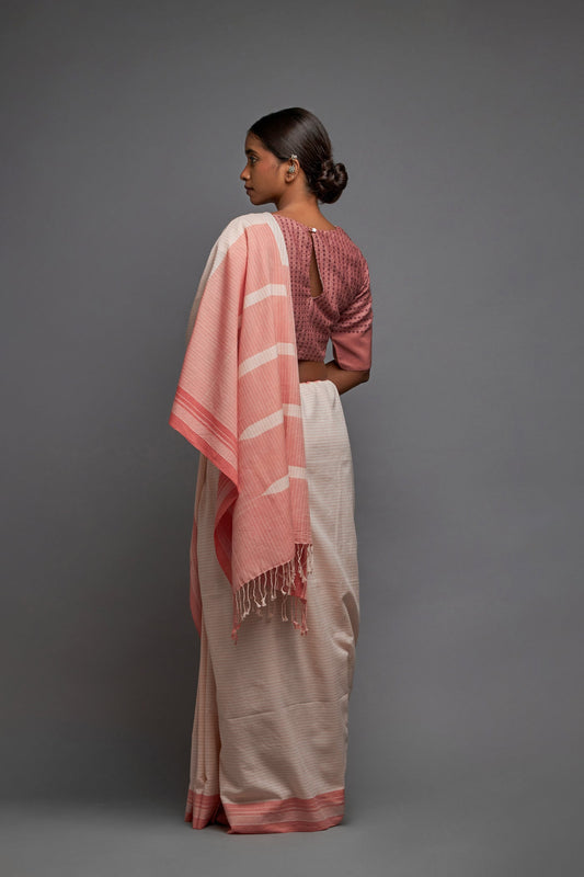 Chowki Onion Pink Chattisgarh Tussar Silk Saree