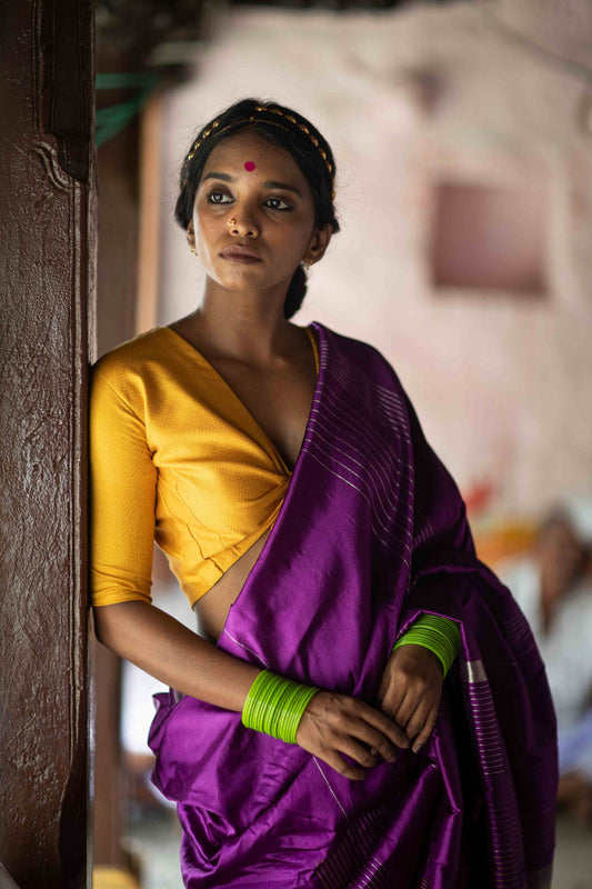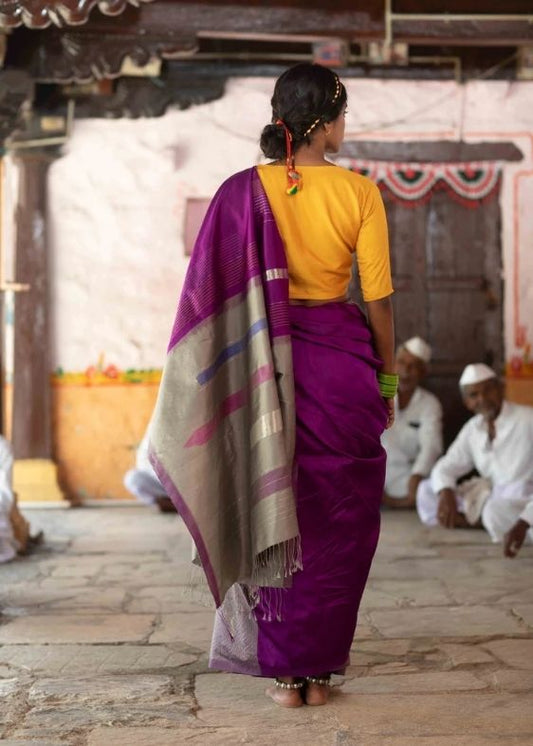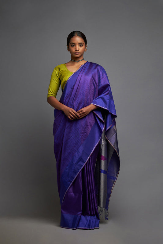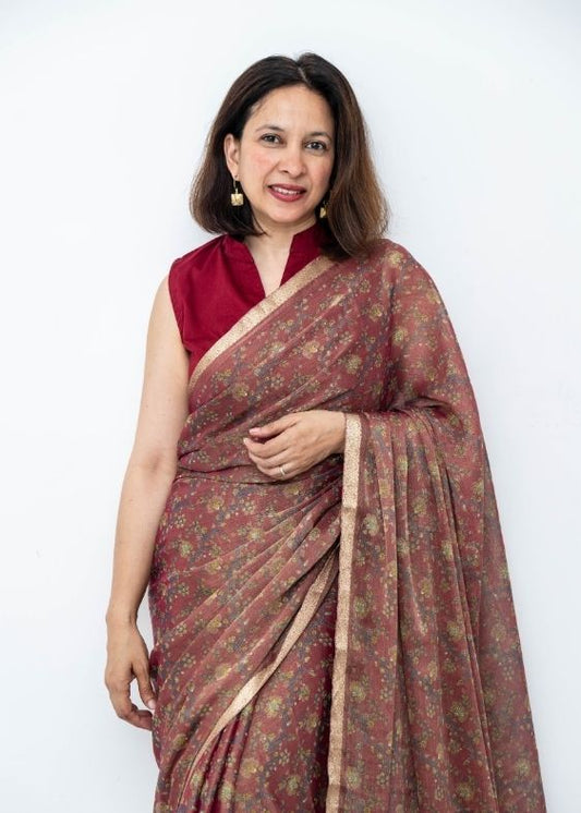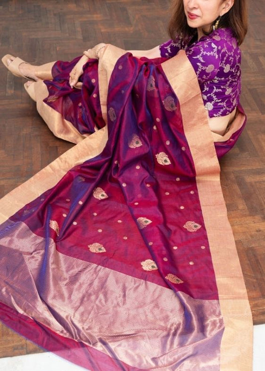 Maroon With Purple Meenakari Buti Silk Cotton Chanderi Saree