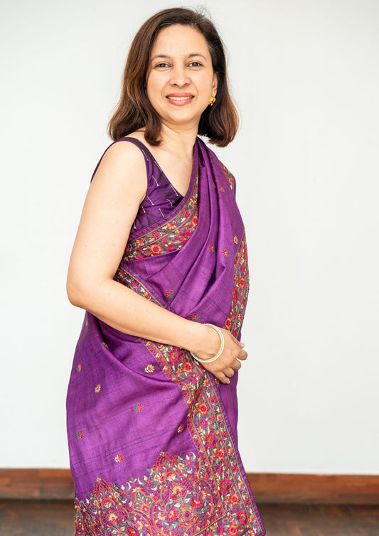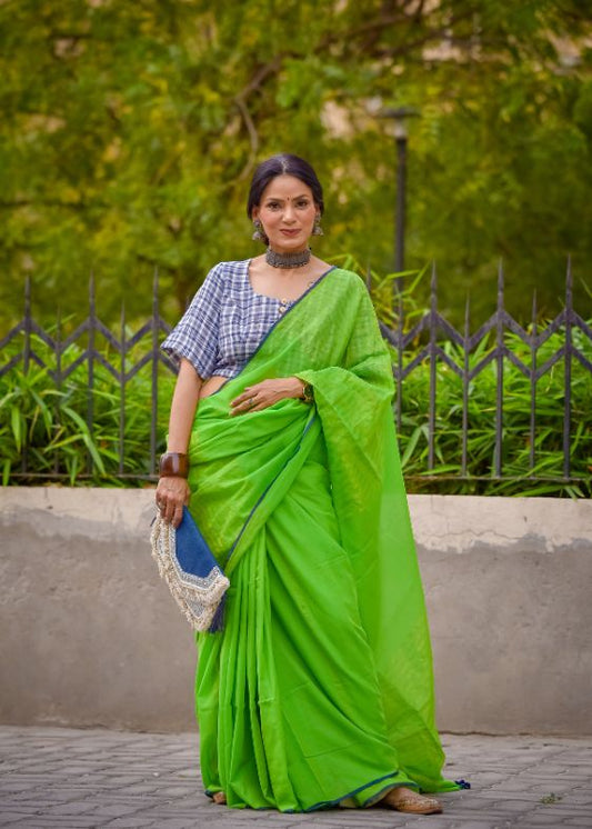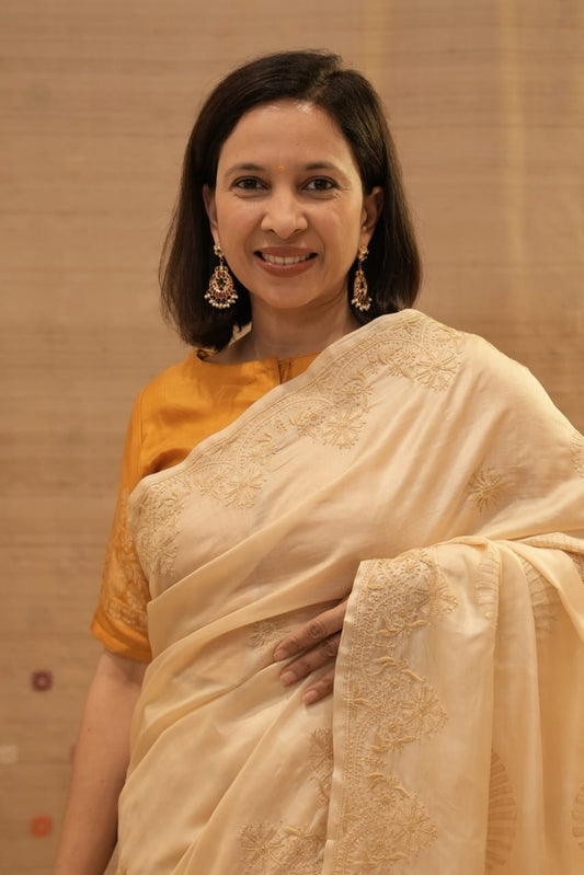Green Hand Embroidery Chikankari Tussar Silk Saree