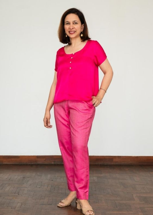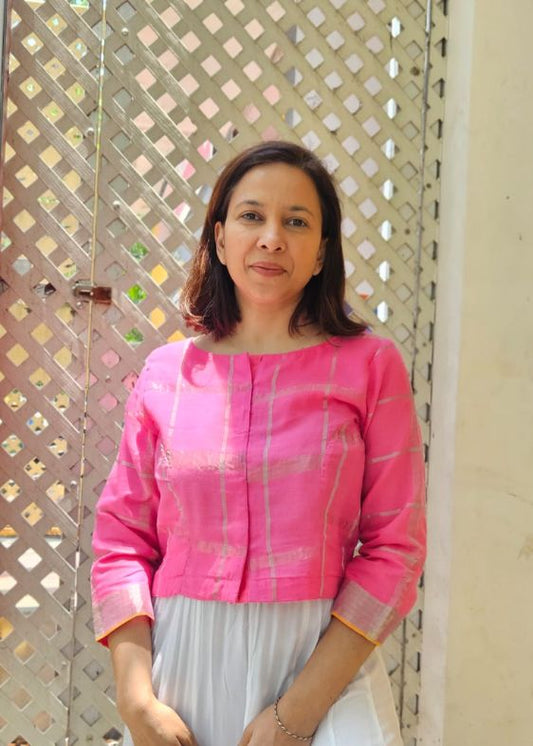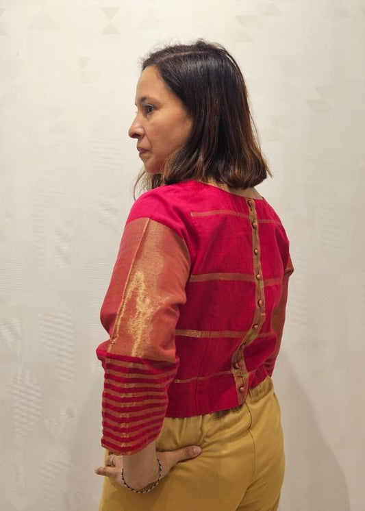 Royal Pink with Gold Fulia Cotton stripes Blouse