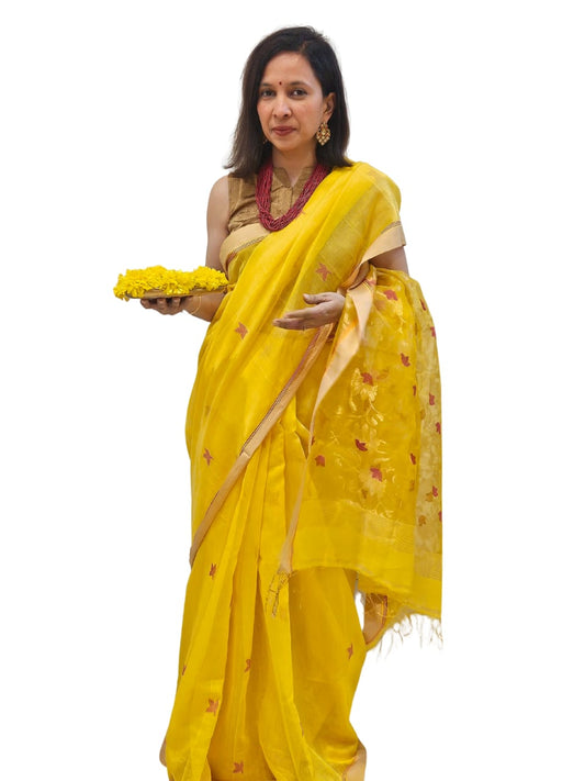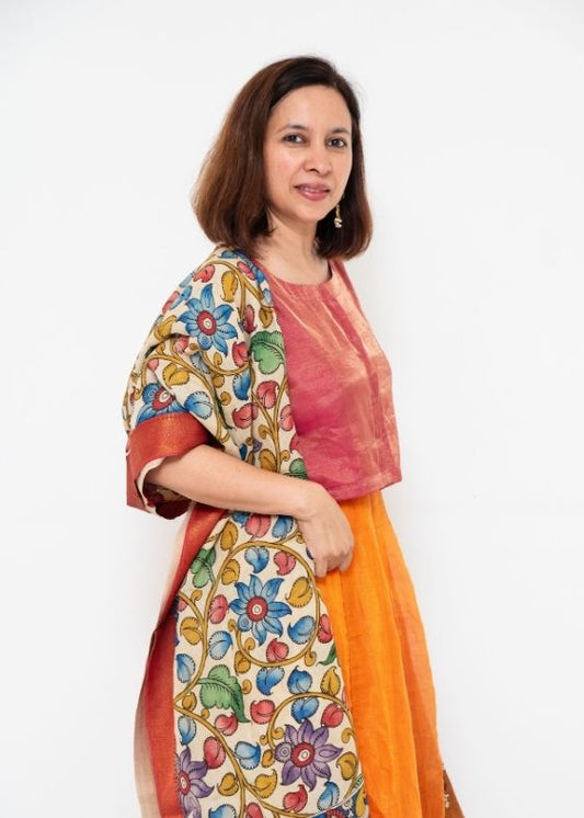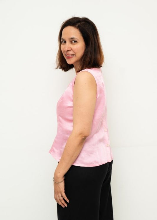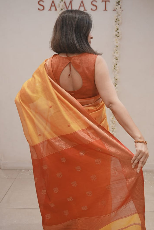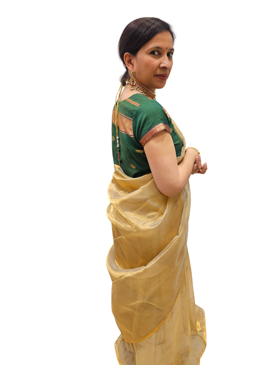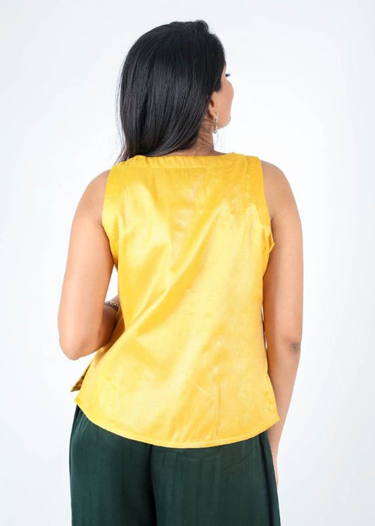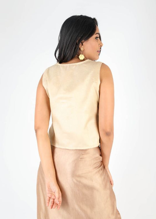 Gold Deepam Neck Silk Tissue Sleeveless Blouse