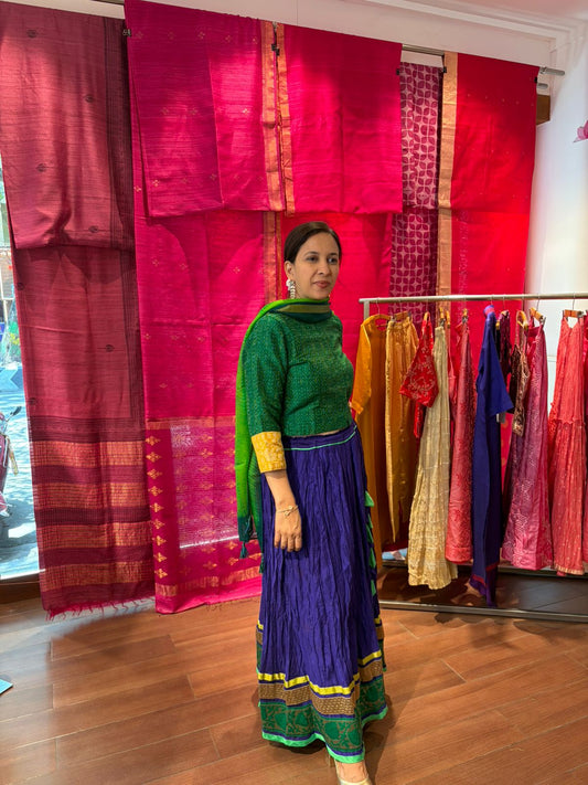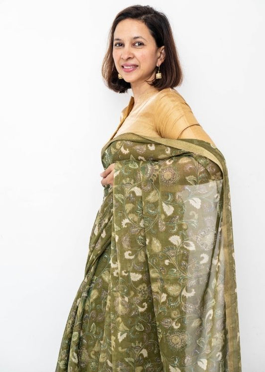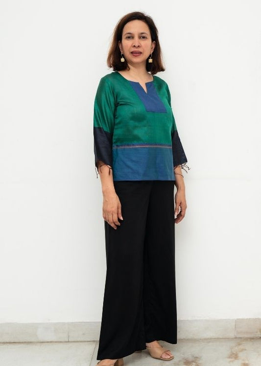 Green Maheswari Silk Cotton Short Sleeve Blouse