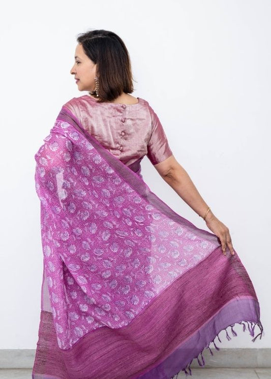 Pink Sp Cut Shibori Tussar Silk Blouse