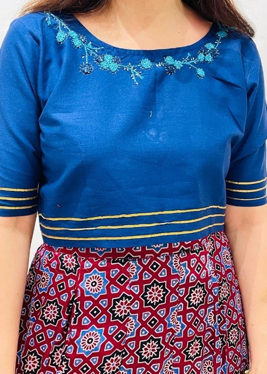 Blue Sleeveless Maheswari Silk Cotton Blouse