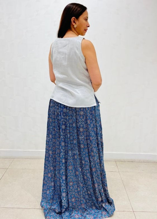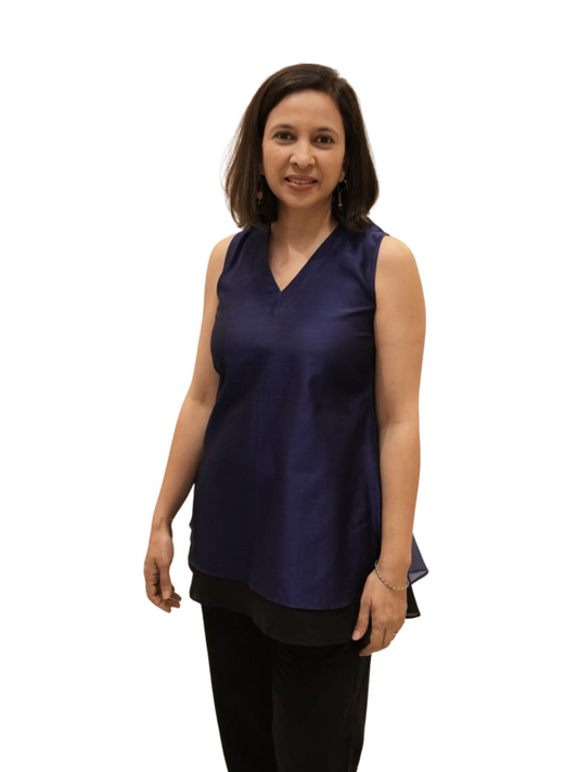 Blue Sleeveless Double Layer Maheswari Silk Cotton Blouse