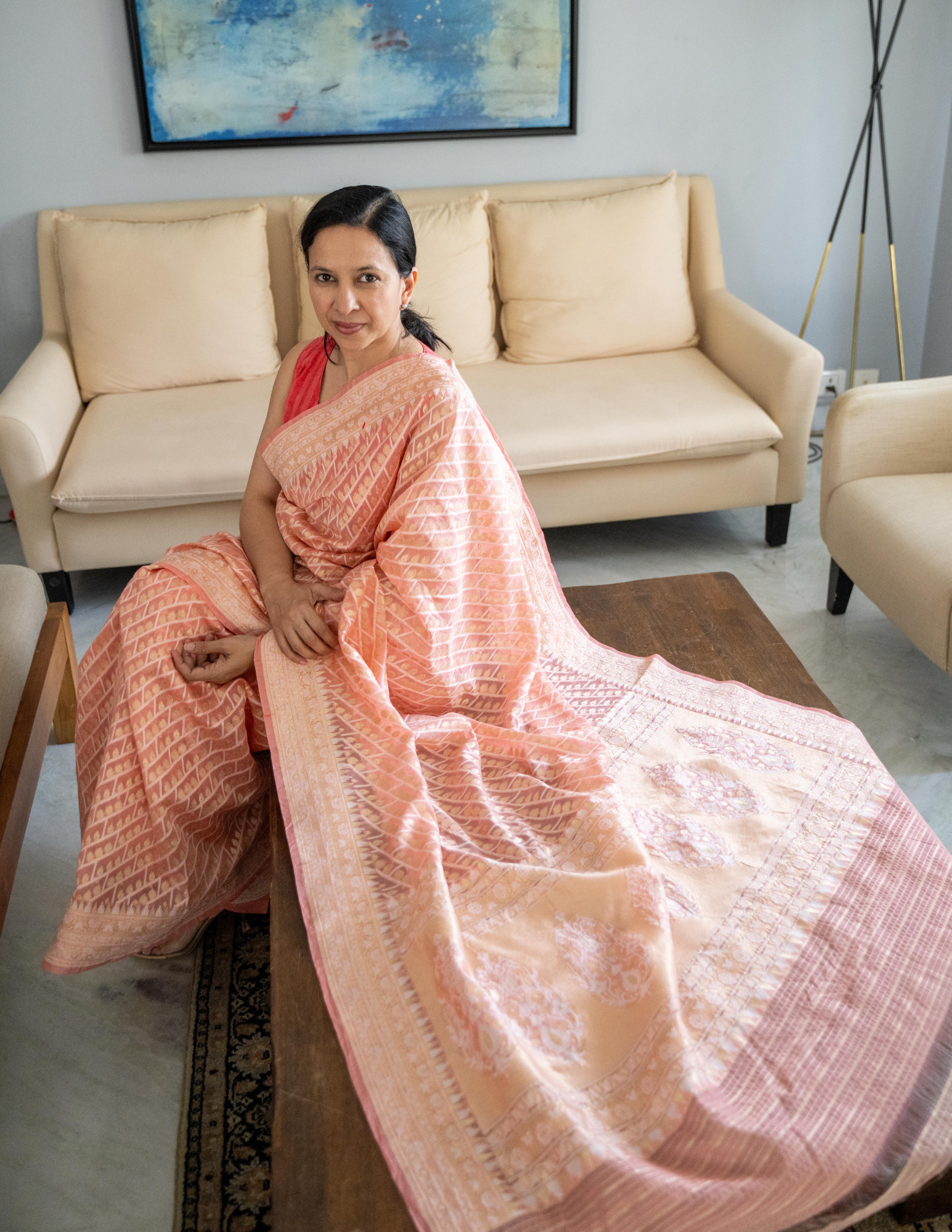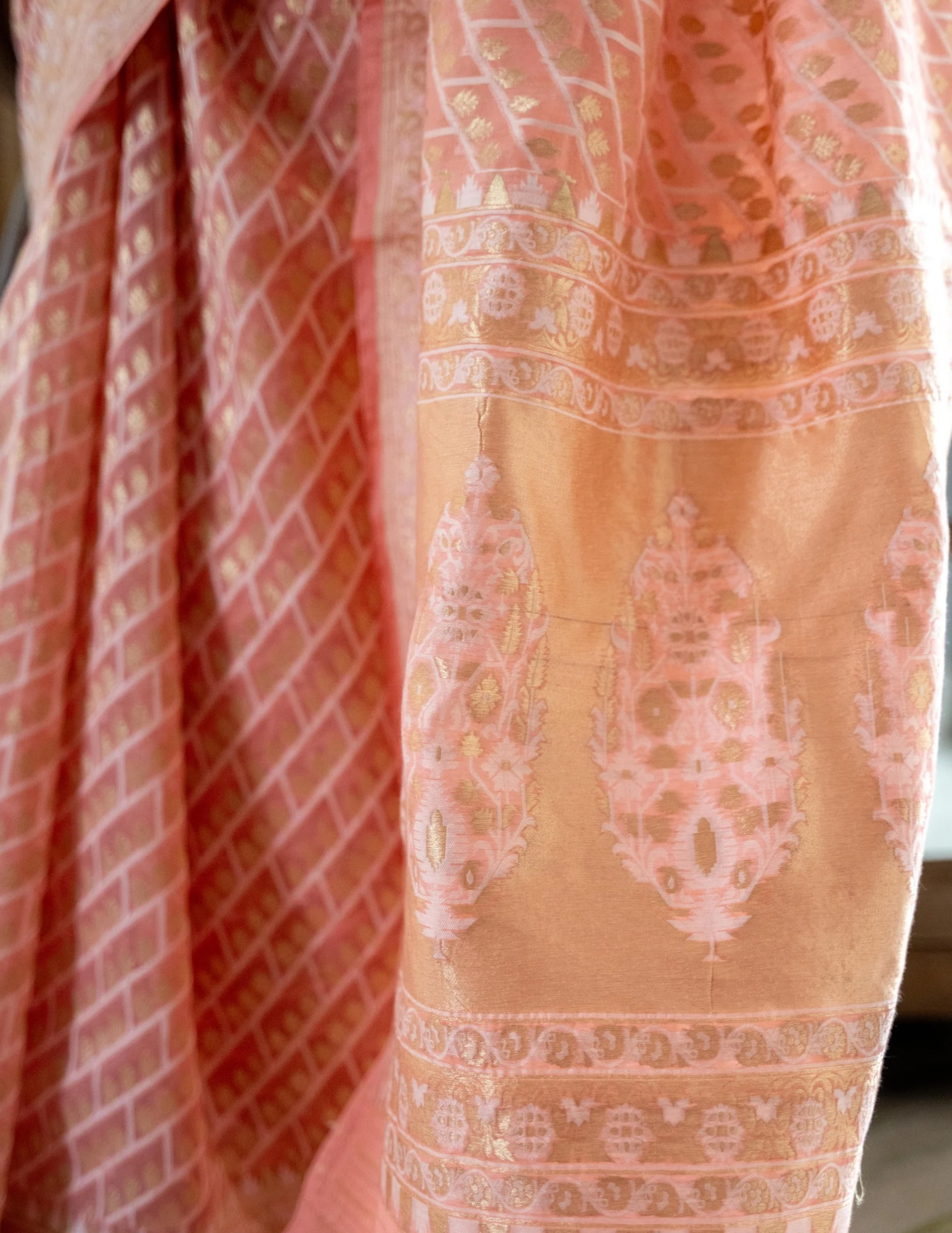MEASUREMENTS: Saree: Length - 5.5mtr, Width - 80 cms.