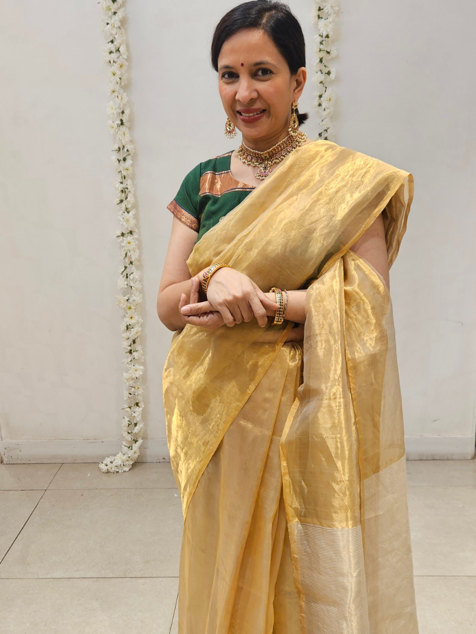 Gold Tissue White Gold Stripes Pallu Chanderi Silk Saree